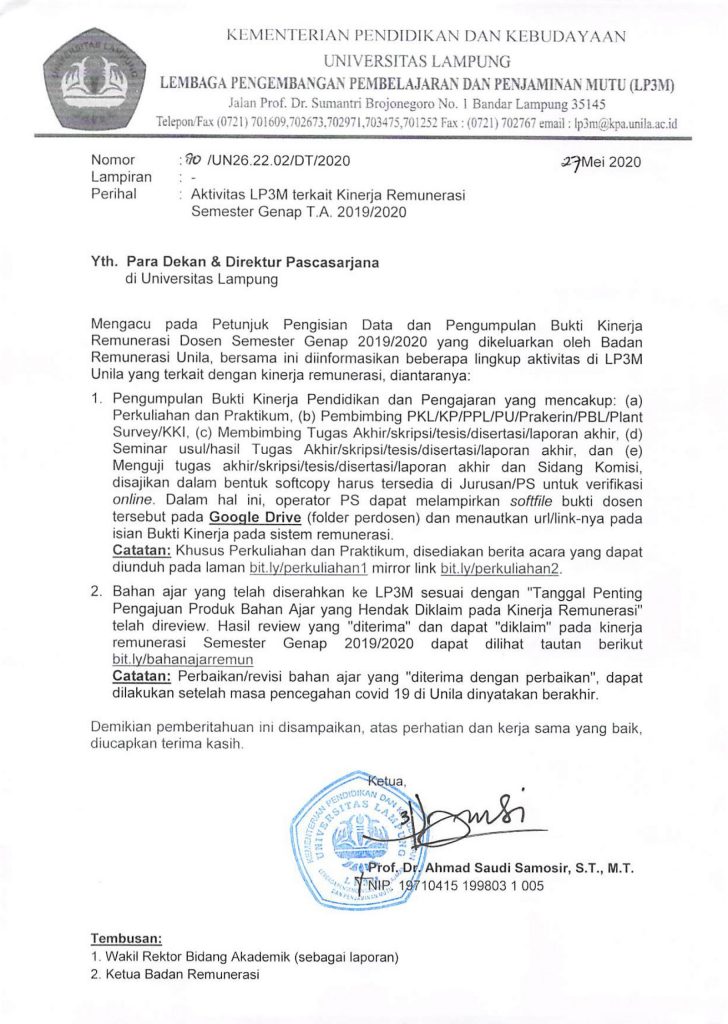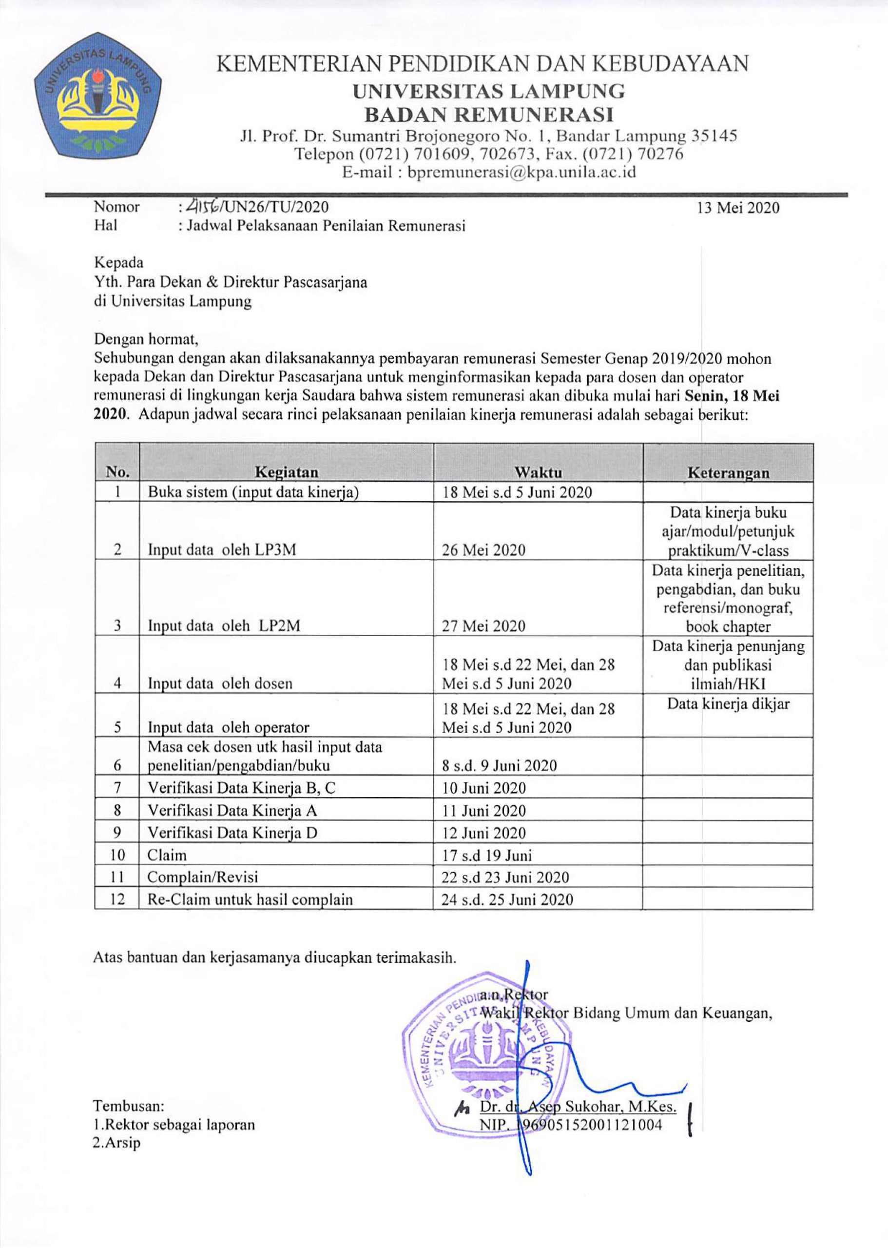 Aktivitas LP3M terkait Kinerja Remunerasi Sem. Genap 2019/2020