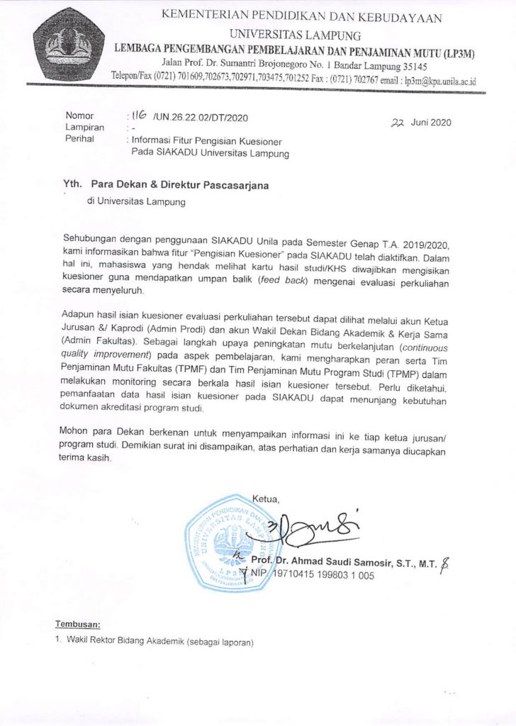 Informasi Fitur Pengisian Kuesioner Pada SIAKADU Universitas Lampung PSDIL Pengumuman 27 Juni 20203 Juli 2020 0 Komentar