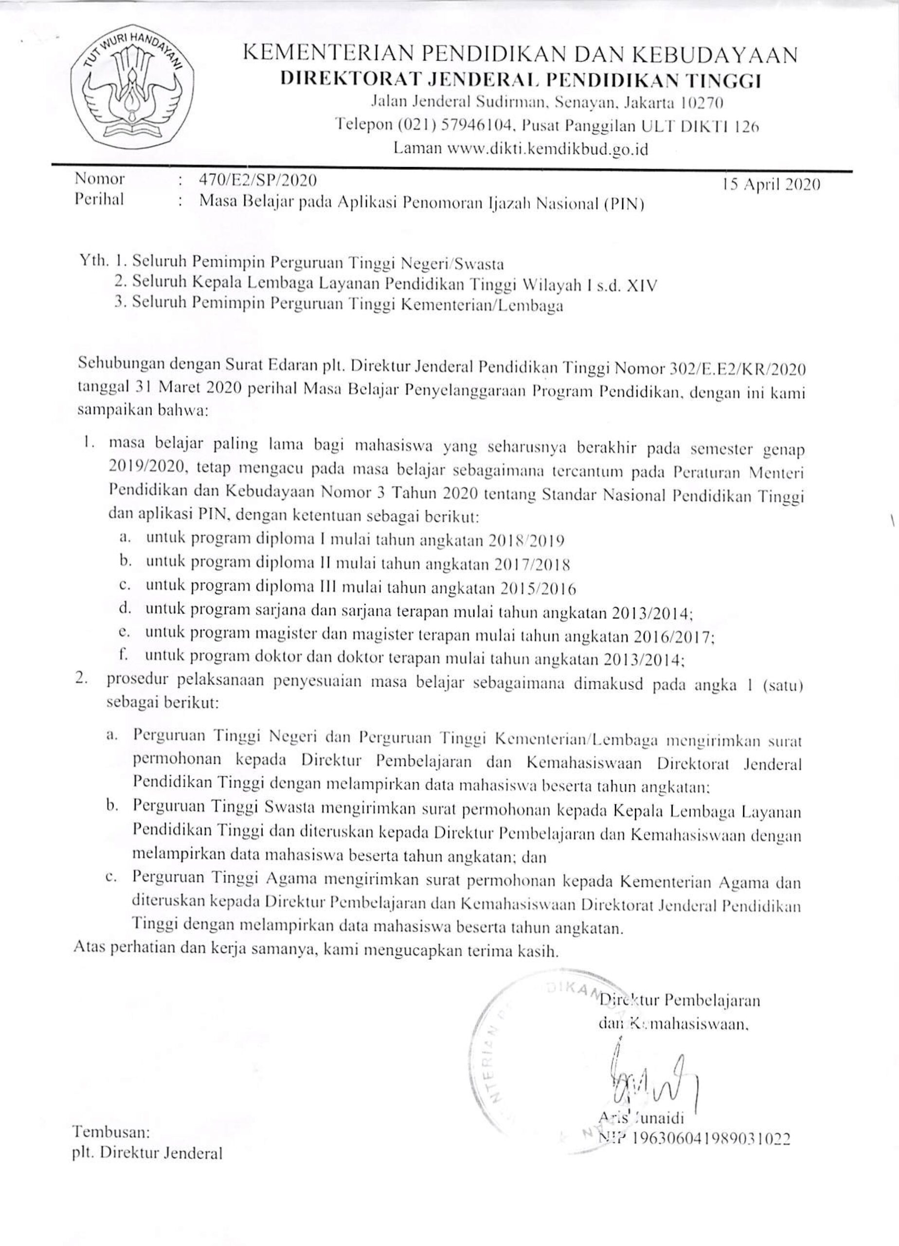Surat Edaran Tentang Pembelajaran Daring dan Tatap Muka (Luring) Semester Genap 2021/2022