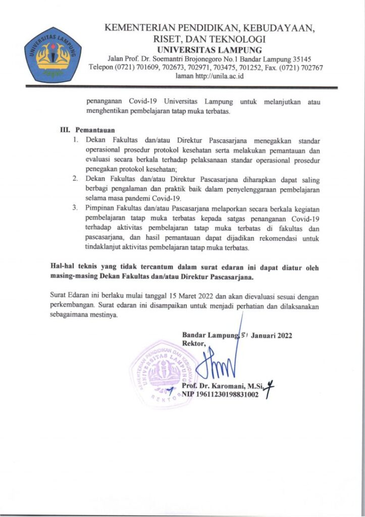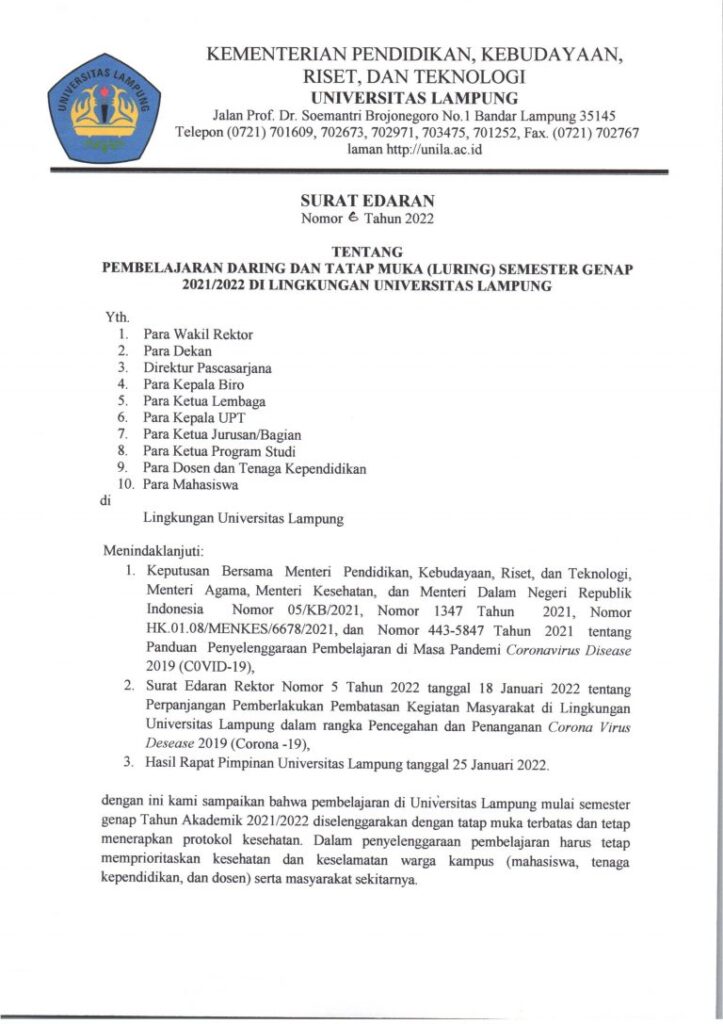 Surat Edaran Tentang Pembelajaran Daring dan Tatap Muka (Luring) Semester Genap 2021/2022 PSDIL Informasi 1 April 20221 Desember 2022 0 Komentar